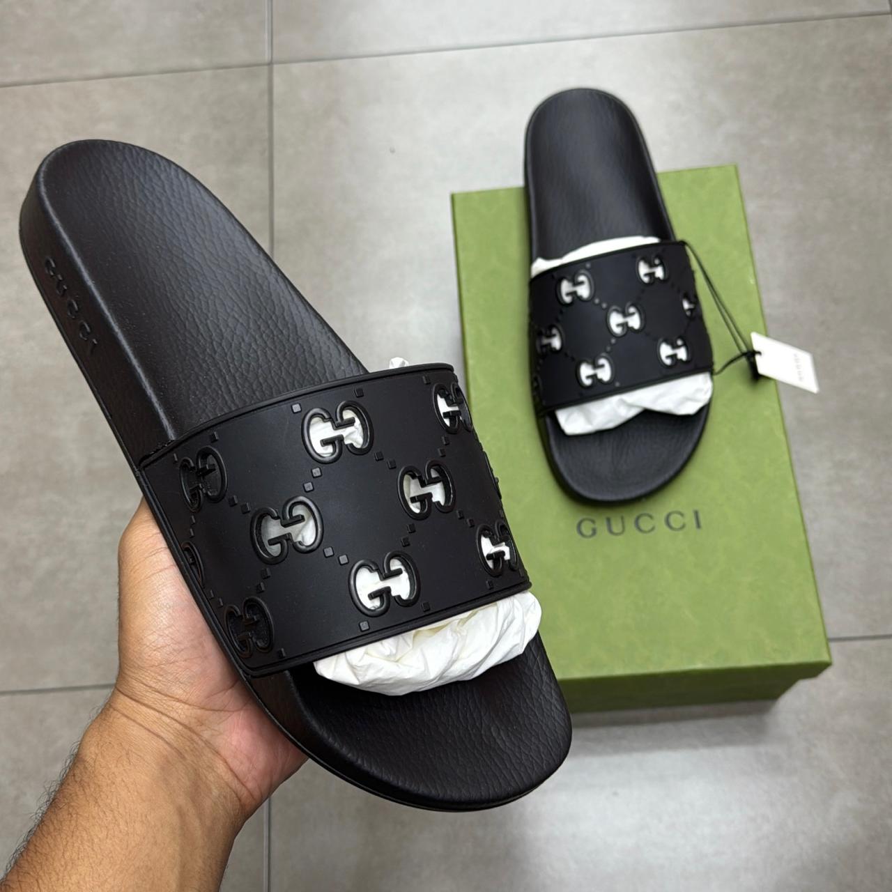 SLIDE GUCCI GG RUBBER BLACK (COMPLETO)